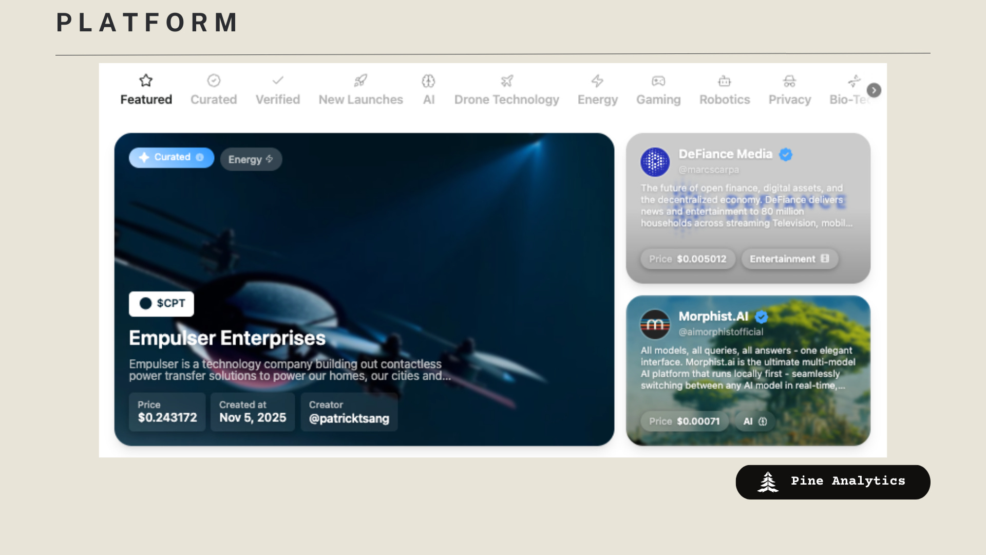 The 12 Verified tokens have a cumulative enterprise value of $36M, with most of that value concentrated in Empulser Enterprises ($22M) and Shiza ($7.8M). Shiza currently represents the largest gains for early buyers on the platform.