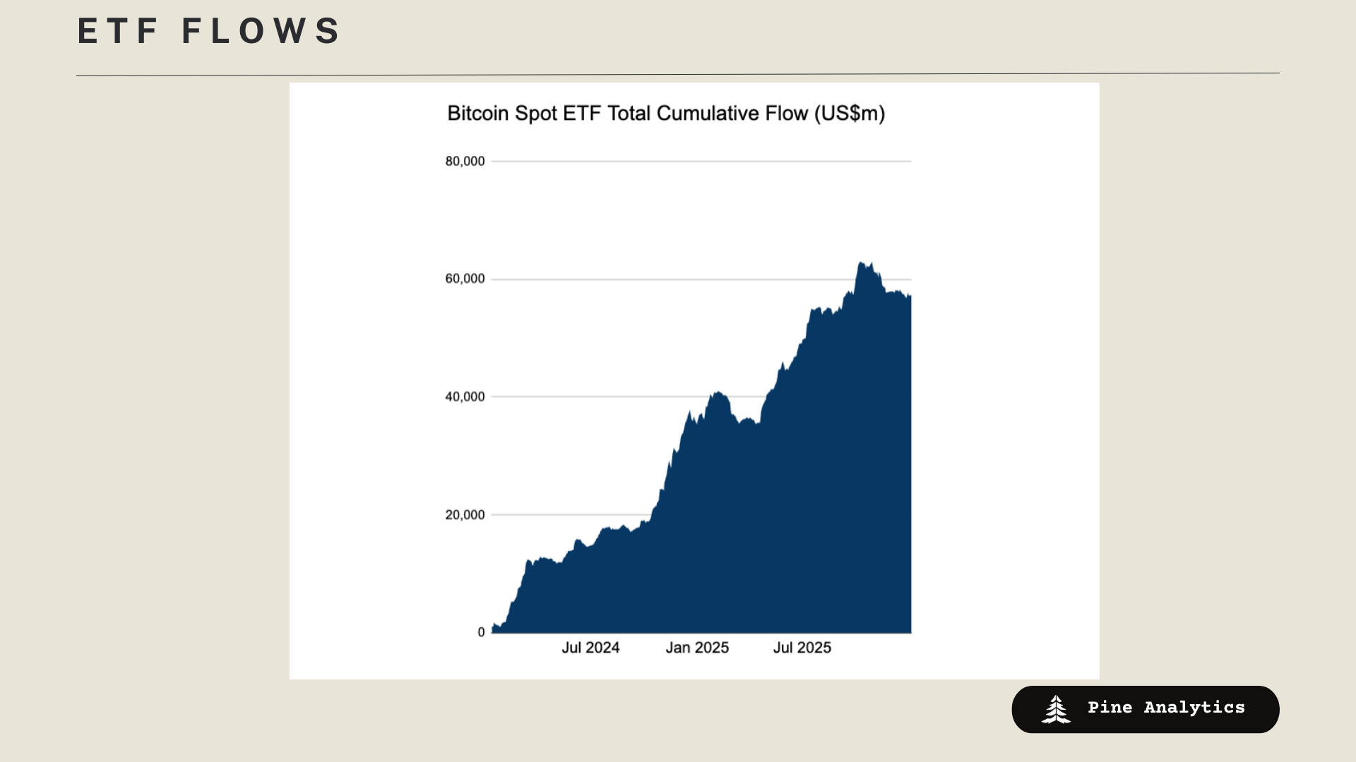 Macro conditions remain cautiously supportive for risk assets, with equities trending higher, credit spreads tight, and the dollar easing — but the setup is clearly late-cycle. Liquidity expectations and ETF inflows into BTC, ETH, and SOL are quietly improving, while sentiment remains neutral, suggesting room for further participation without obvious exuberance. The base case over the next 1–3 months is a “grind higher with volatility,” though any macro surprise could tighten risk appetite quickly.