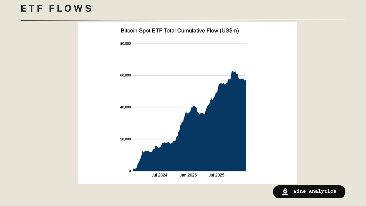 Macro conditions remain supportive but late-cycle, which tends to favor crypto as long as liquidity expectations stay intact. Tight credit spreads, stable equities, and a weaker dollar suggest investors are comfortable taking risk, while muted search interest and neutral sentiment imply there is still room for participation to expand without the market being over-crowded. ETF inflows returning across BTC, ETH, and SOL reinforce the idea that institutional flows are quietly re-accelerating beneath the surface.