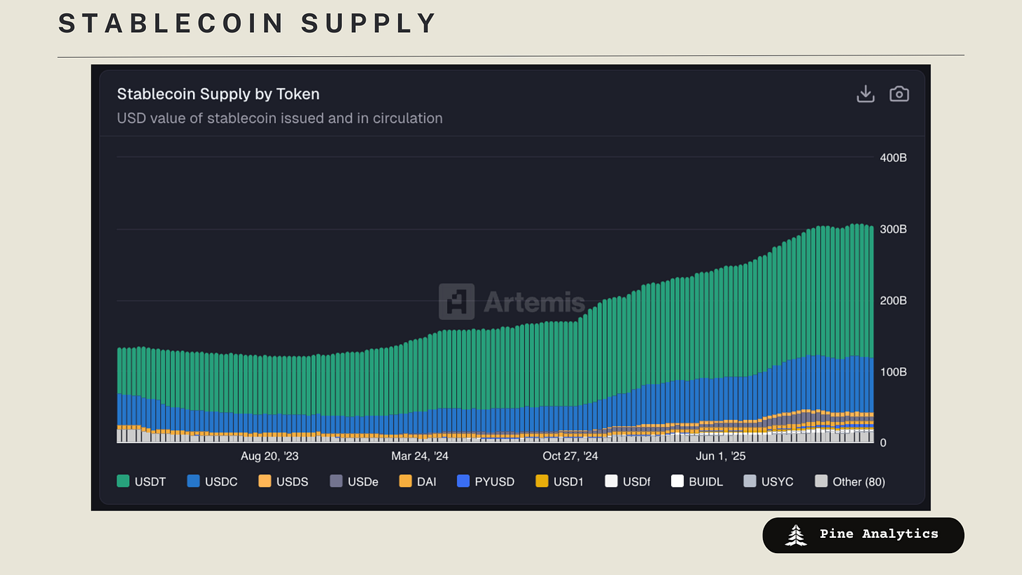 Market Capitalization: Stablecoin market cap stands at $306.2B, with supply down $0.7B week-over-week and $0.9B over the past 30 days. Stablecoin supply appears to be stalling after running up through mid-October.